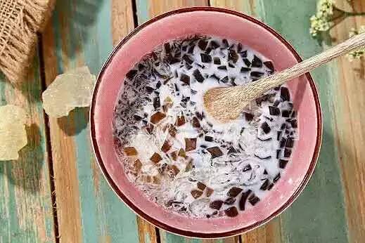 Sau khi lấy ra khỏi chảo, thêm một lượng mật ong thạch Guiling thích hợp và dùng.